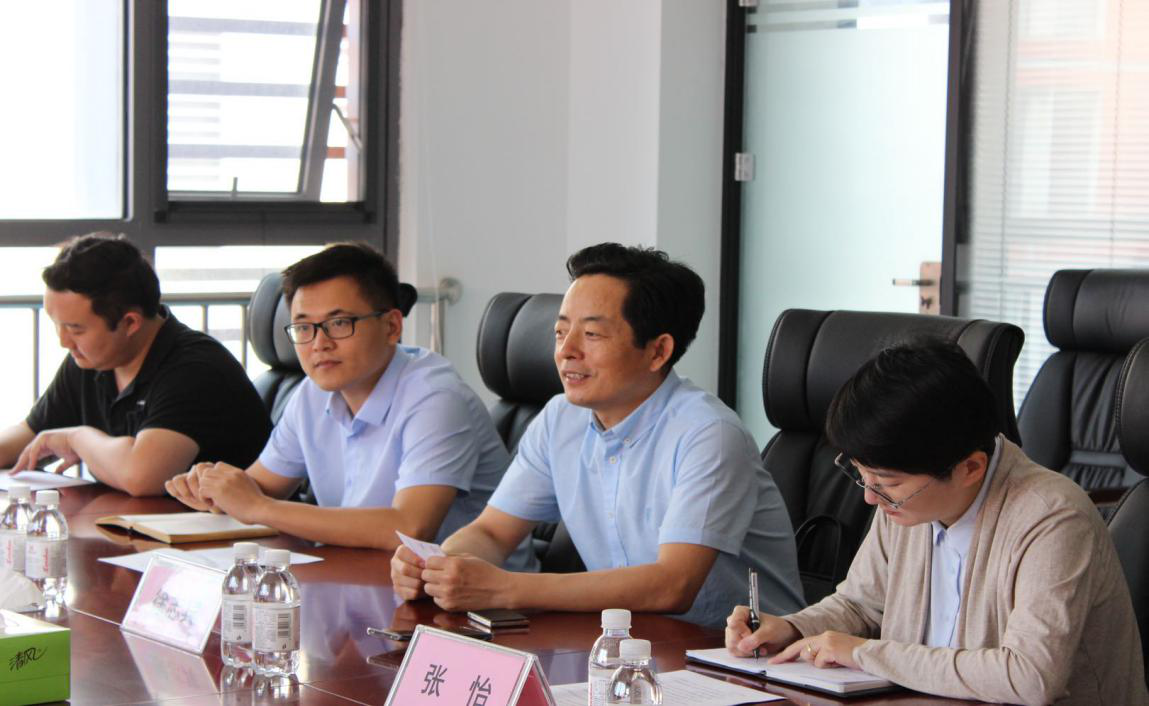 陪同人員首先向嚴總一行介紹了一樓交易大廳的具體情況和后期業務開展計劃。隨后雙方前往會議室進行座談交流。