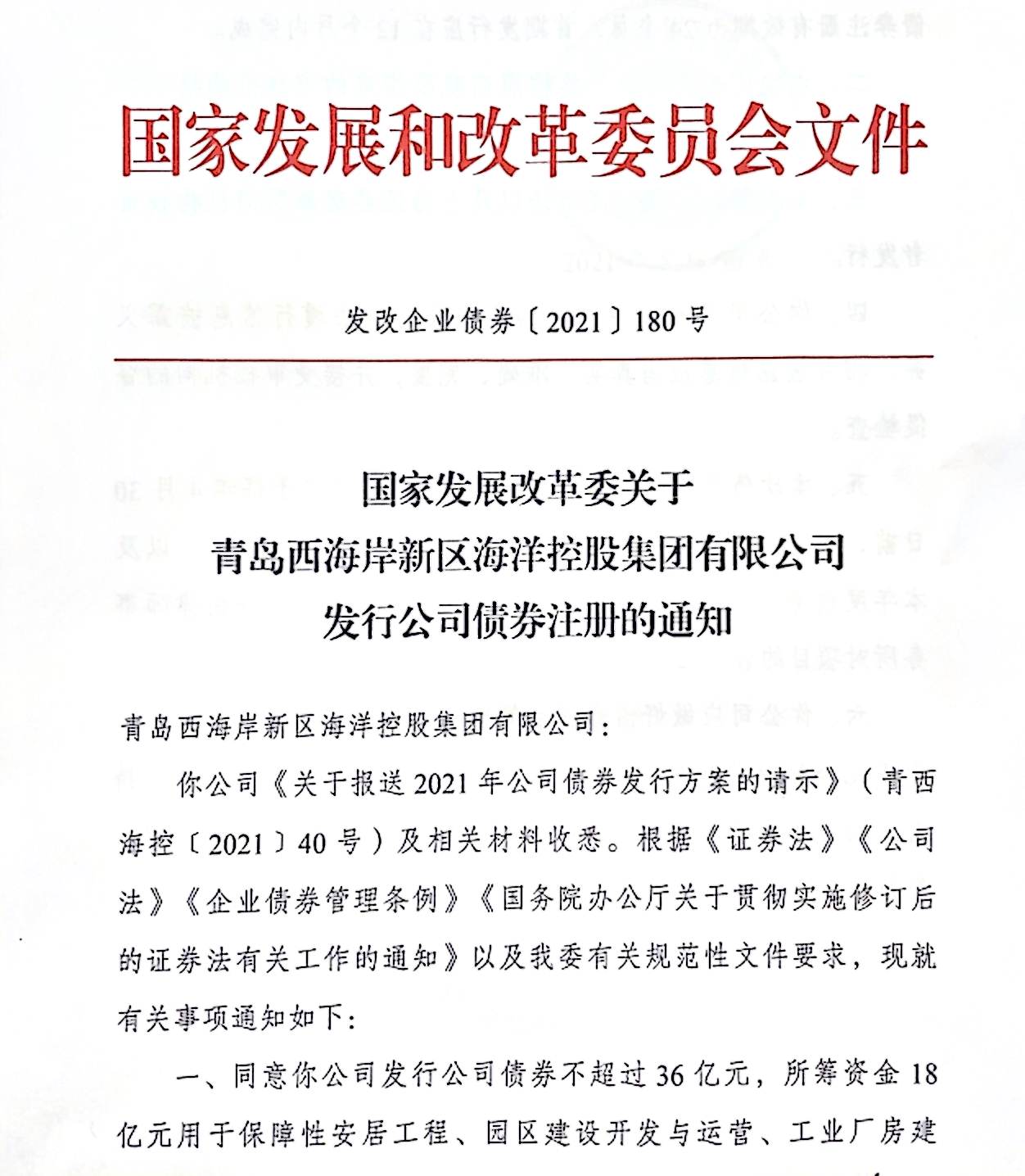 8月30日,海控集團(tuán)成功獲得國家發(fā)展和改革委員會(huì)優(yōu)質(zhì)企業(yè)債批復(fù),額度36億元,標(biāo)志著青島市第一支優(yōu)質(zhì)企業(yè)債券成功獲批。