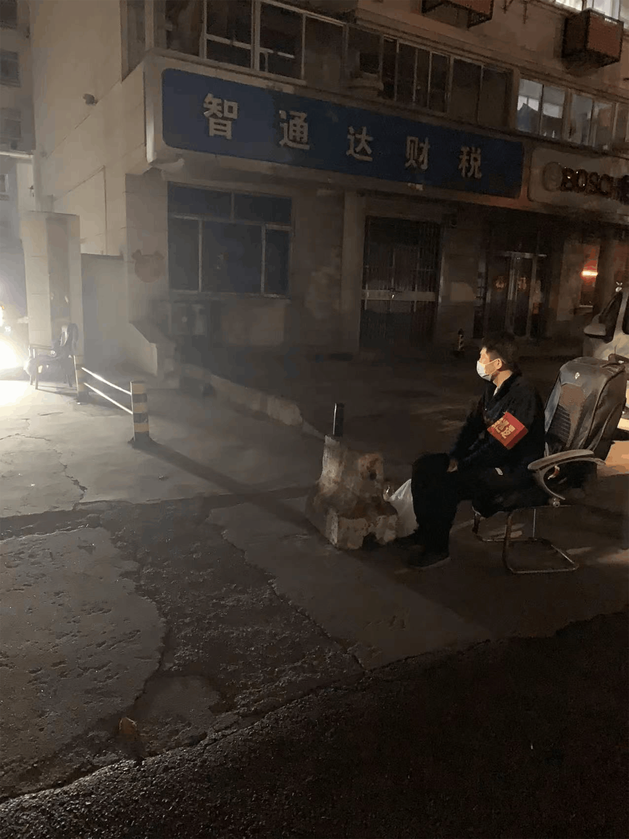 社區防疫工作事務繁雜,卻是疫情防線的關鍵節點。志愿者們全天24小時在所負責小區門口執勤,吃飯不離崗,休息不離點。晚上十點后,才能輪流去車里睡一會兒。